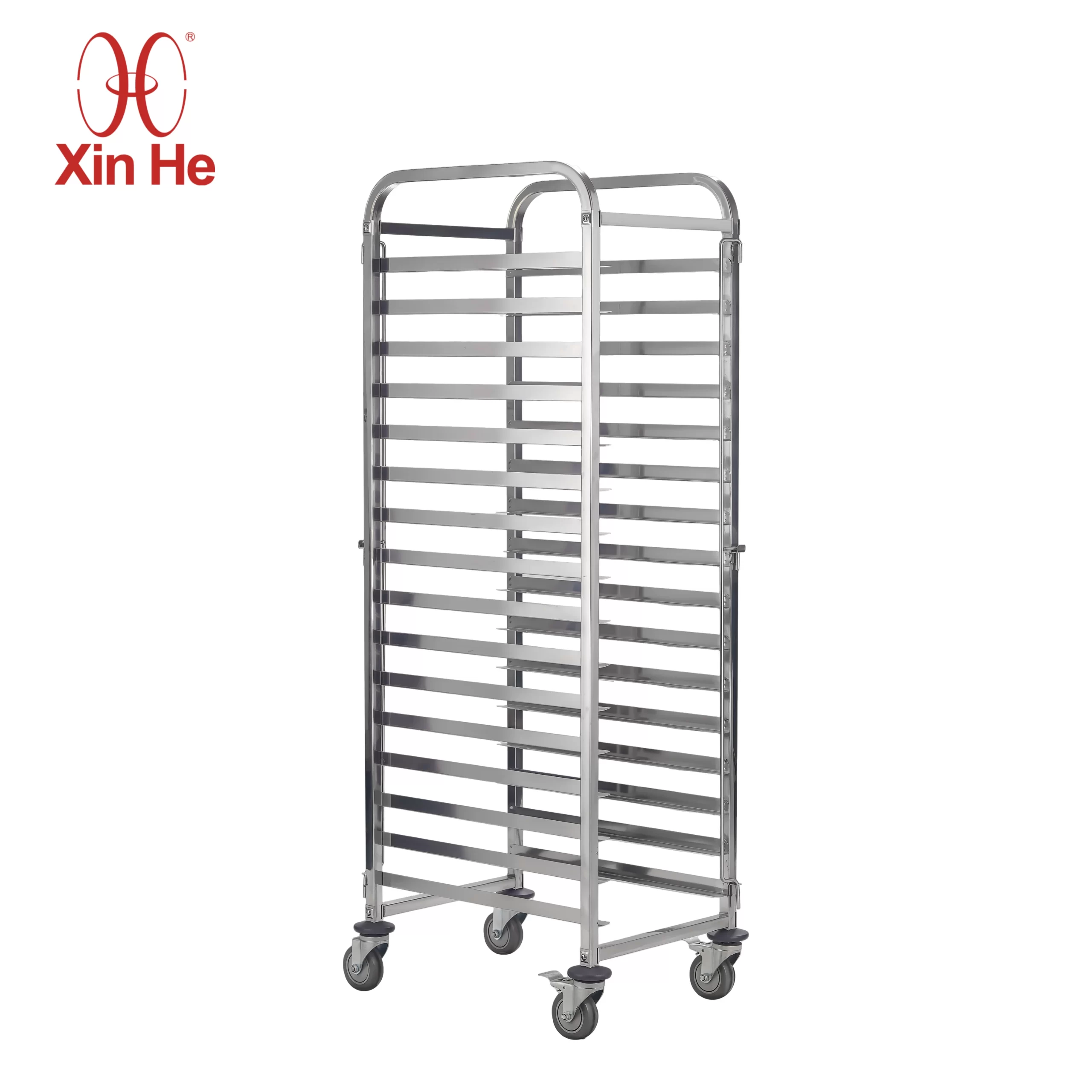 Made from durable 201 stainless steel, the single-sided design allows easy access and space-saving storage. The high-capacity rack can hold multiple baking trays and features smooth swivel wheels for mobility and convenience.